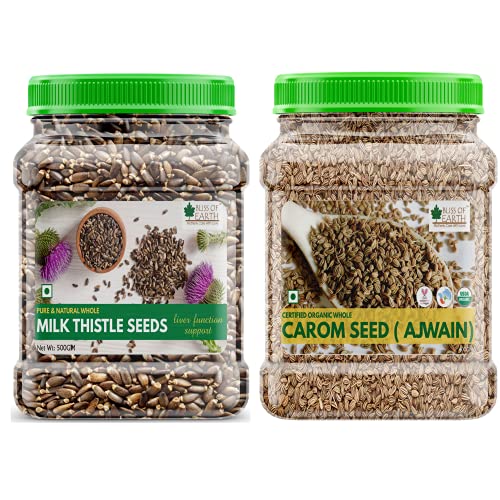 Bliss of Earth Combo Of Naturally Organic Carom Seeds (400gm) For Healthy Cooking And Milk Thistle Seeds (500gm) Super Food For Liver Cleansing Immunity Boosting And Blood Sugar Control (Pack Of 2)