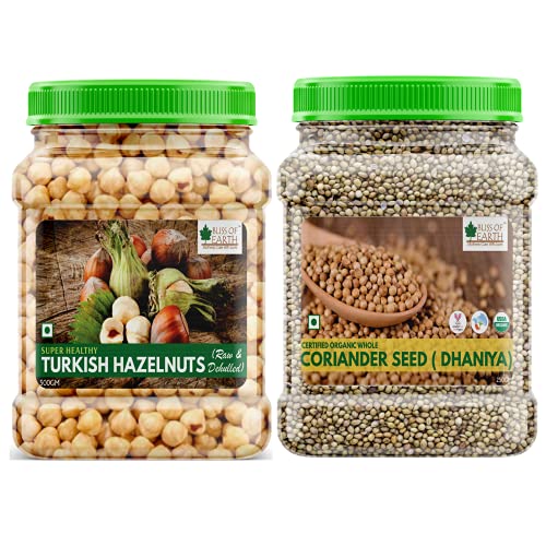 Bliss of Earth Combo Of Turkish Hazelnuts (500gm) Raw & Dehulled Healthy & Tasty And Organic Whole Coriander Seeds Sabut Dhaniya 250gm (Pack Of 2)