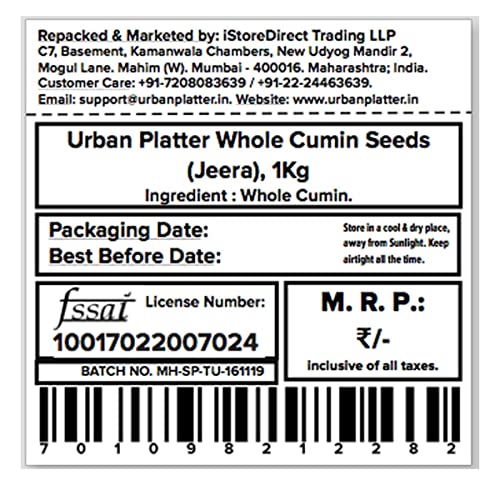 Whole Cumin Seeds (Jeera) , 1 KG (35.27 OZ)