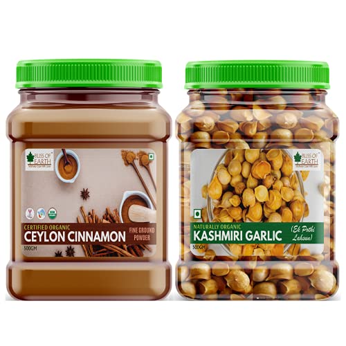 Bliss of Earth Combo Of Naturally Organic Kashmiri Garlic (500gm) From Indian Himalayas Snow Mountain Garlic And Ceylon Cinnamon Powder (500gm) For Weight Loss Drinking & Cooking (Pack Of 2)