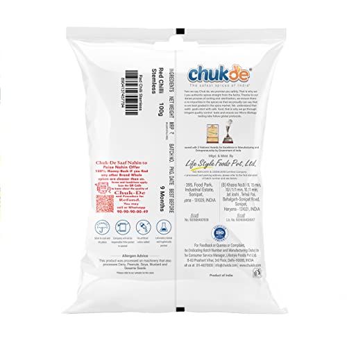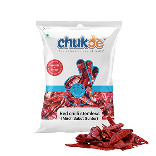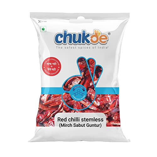 Chukde Spices Stem Less Red Chilli Whole (Lal mirch Sabut) 200g pack of 2