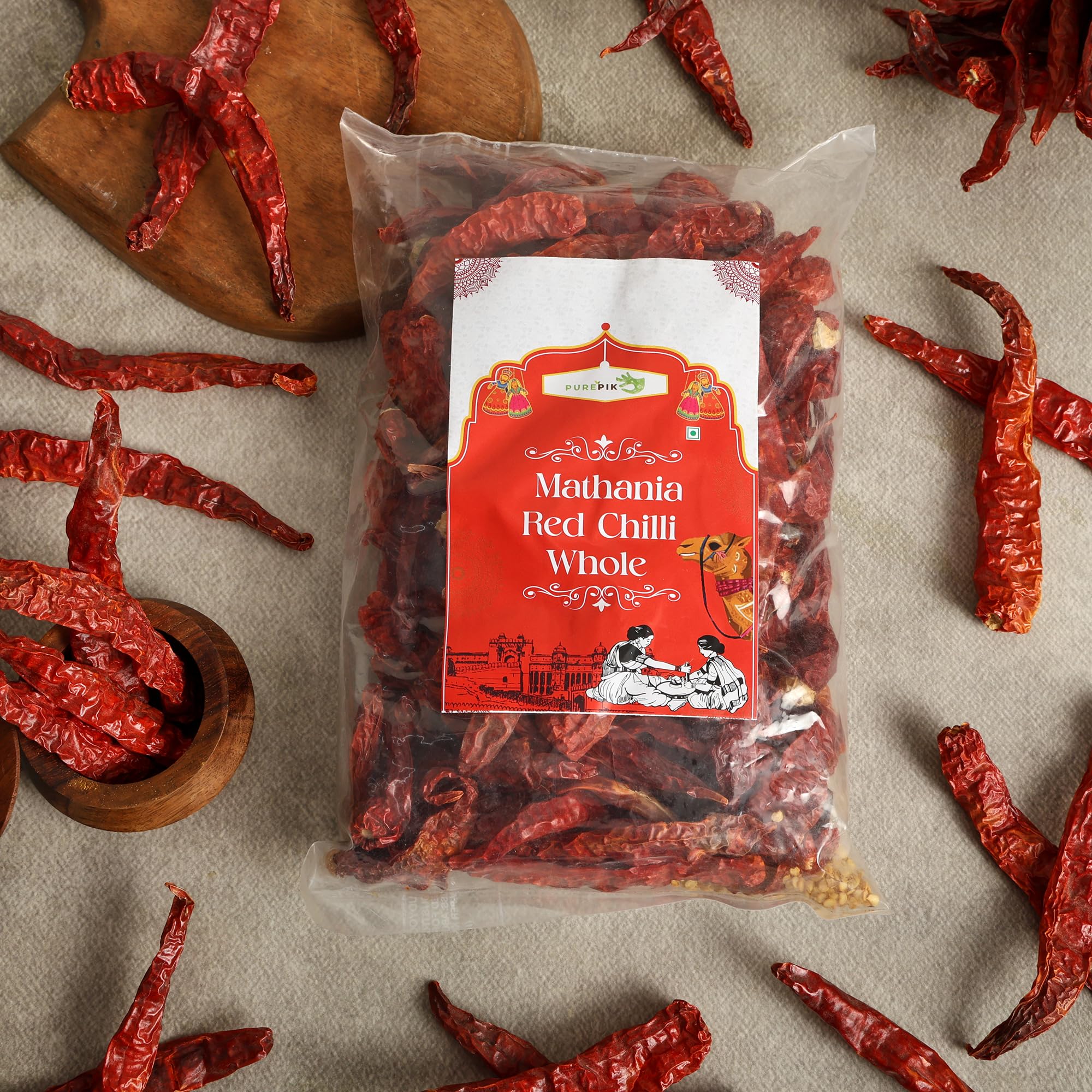 In Marwari and Rajput cooking the Mathania mirch is used mostly as a dry spice which lends colour and body to the dishes. There is also the culture of soaking the chillies when fresh in mustard oil and consuming it later as a pickle. But this boutique s