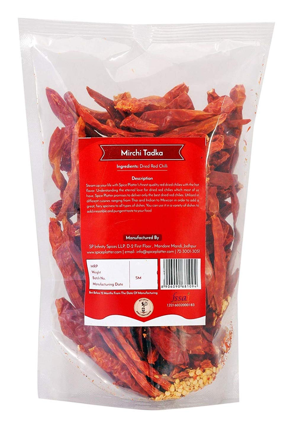 Spice Platter Mathania Red Chilli / Stemless Tadka Mirchi (Sukhi Sabut Mathaniya Mirch) - 400 g - Pa