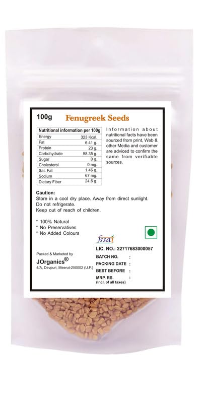 HomeGrocerySpicesWhole SpicesFenugreek SeedsJOrganics Fenugreek Seed Powder (Methi) - 100gm 100% Pure Organic | No Preservatives Colors or Fragrances | Ideal for Cooking Health Drinks Hair & Face Packs