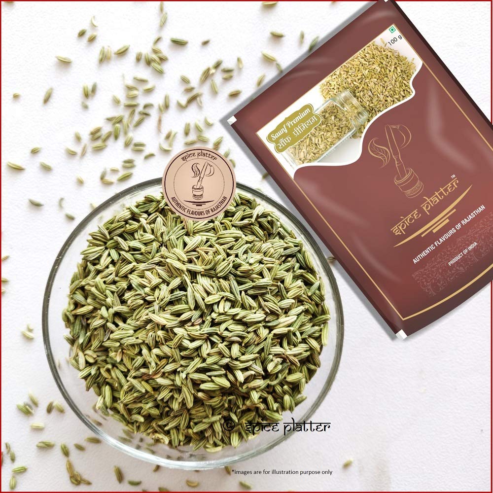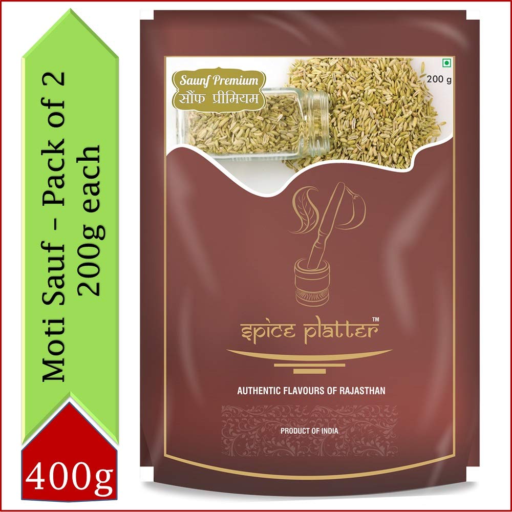 Spice Platter Whole Saunf Fennel Seeds/ Moti Sauf (400 GMS) - Pack of 2 - 200g Each Pouch