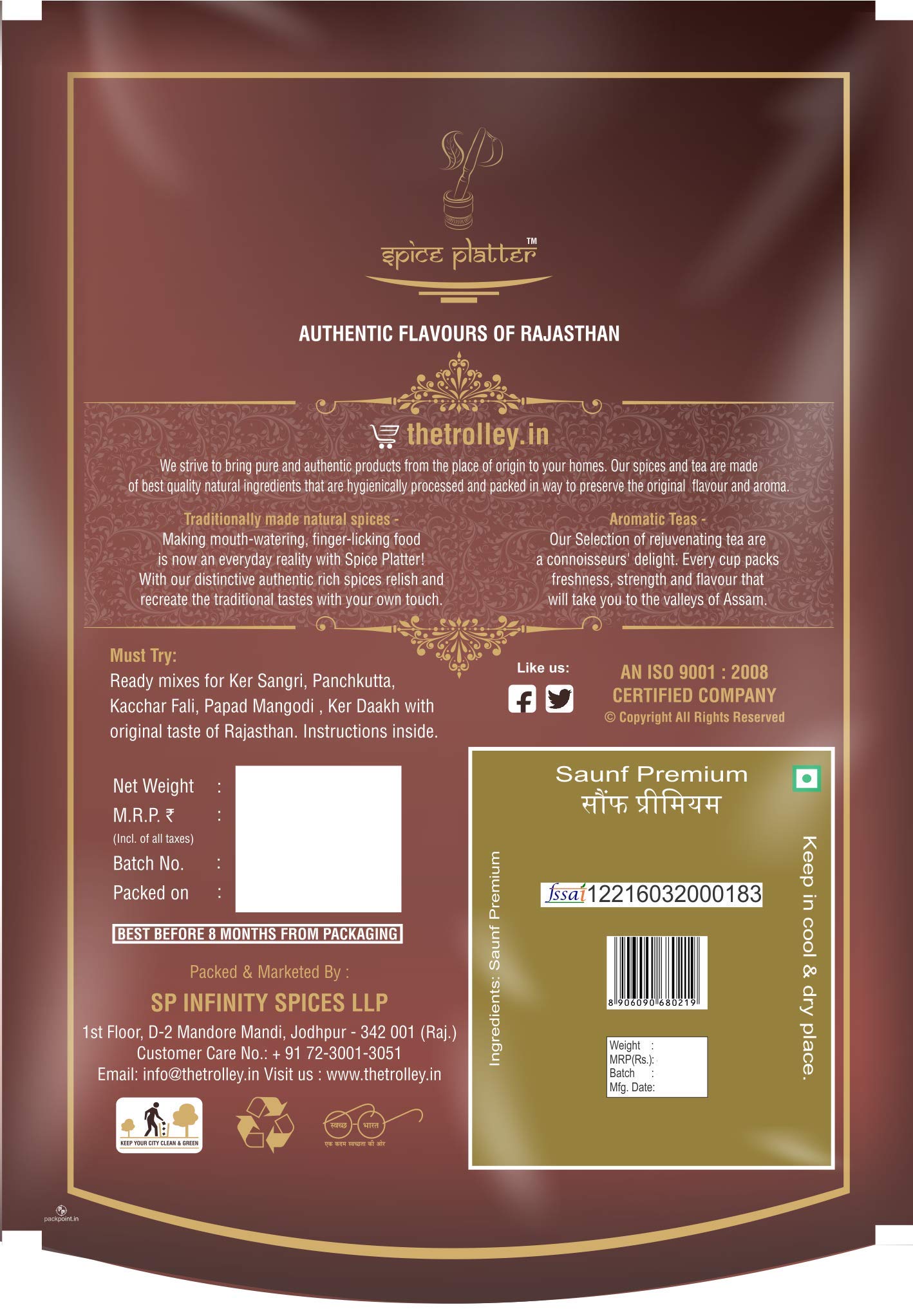 Spice Platter sauf is aromatic and flavourful herb. Pack of 2 - 200g each