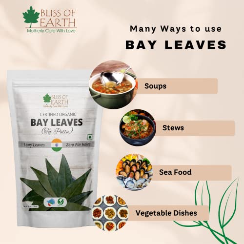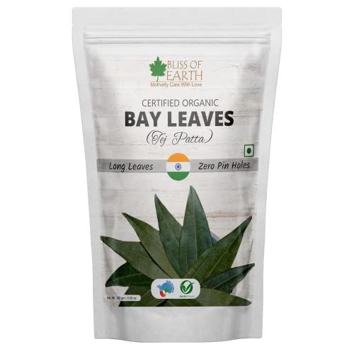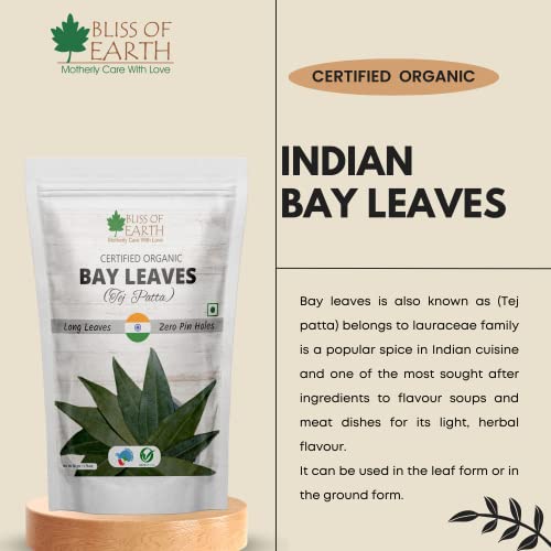 Bliss of Earth Certified Organic Indian Bay Leaves With Zero Pin Holes & Zero Dust, A1 Grade Tej Patta With Uniform Green Color, 100gm
