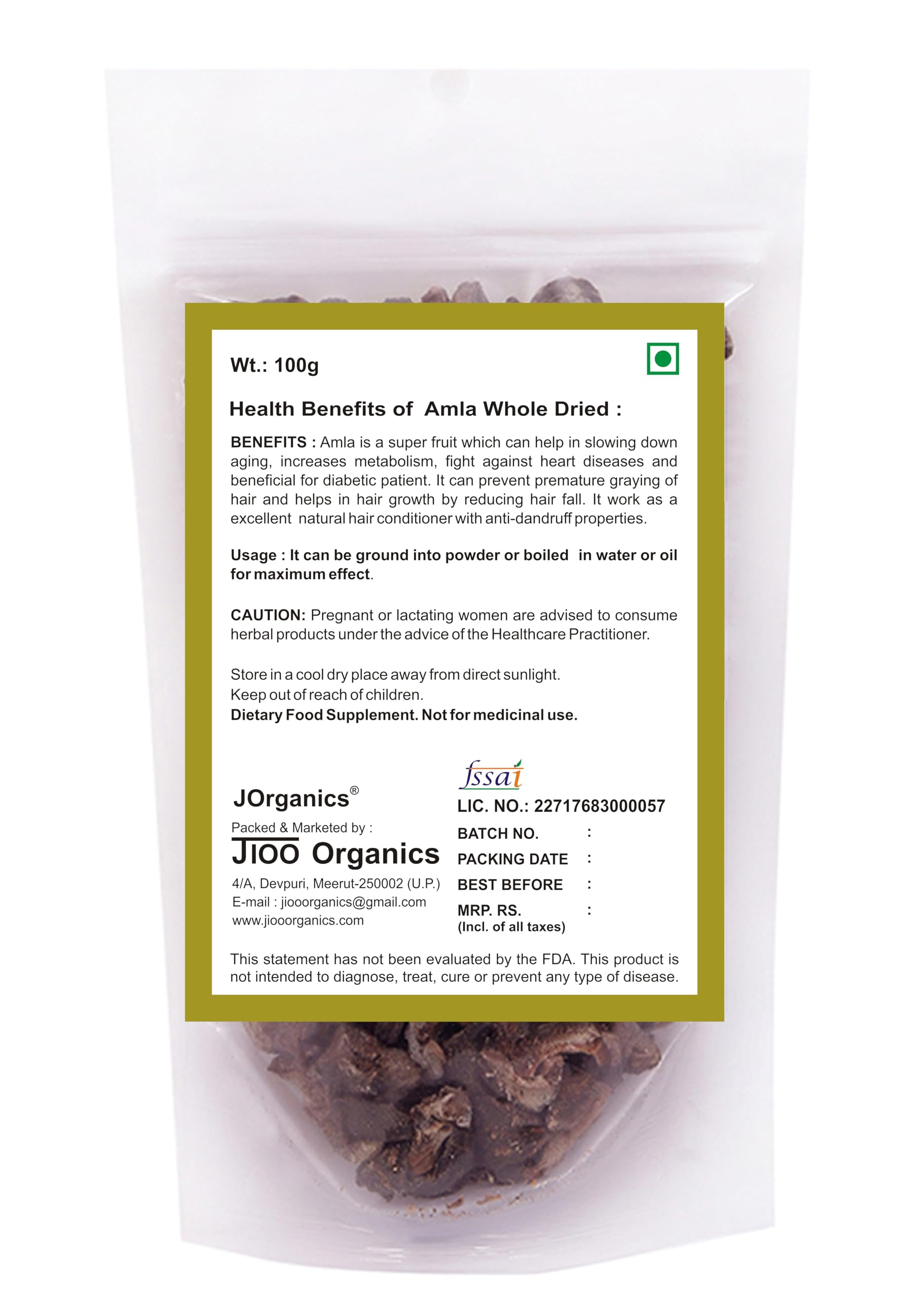 JOrganics Amla Dried Amla100gm- Premium Sun Dried Avla Gooseberry for Hair Dry Berries - Sweet Indian Gooseberry Snack | Honey Processed Sugar-free Low-Calorie
