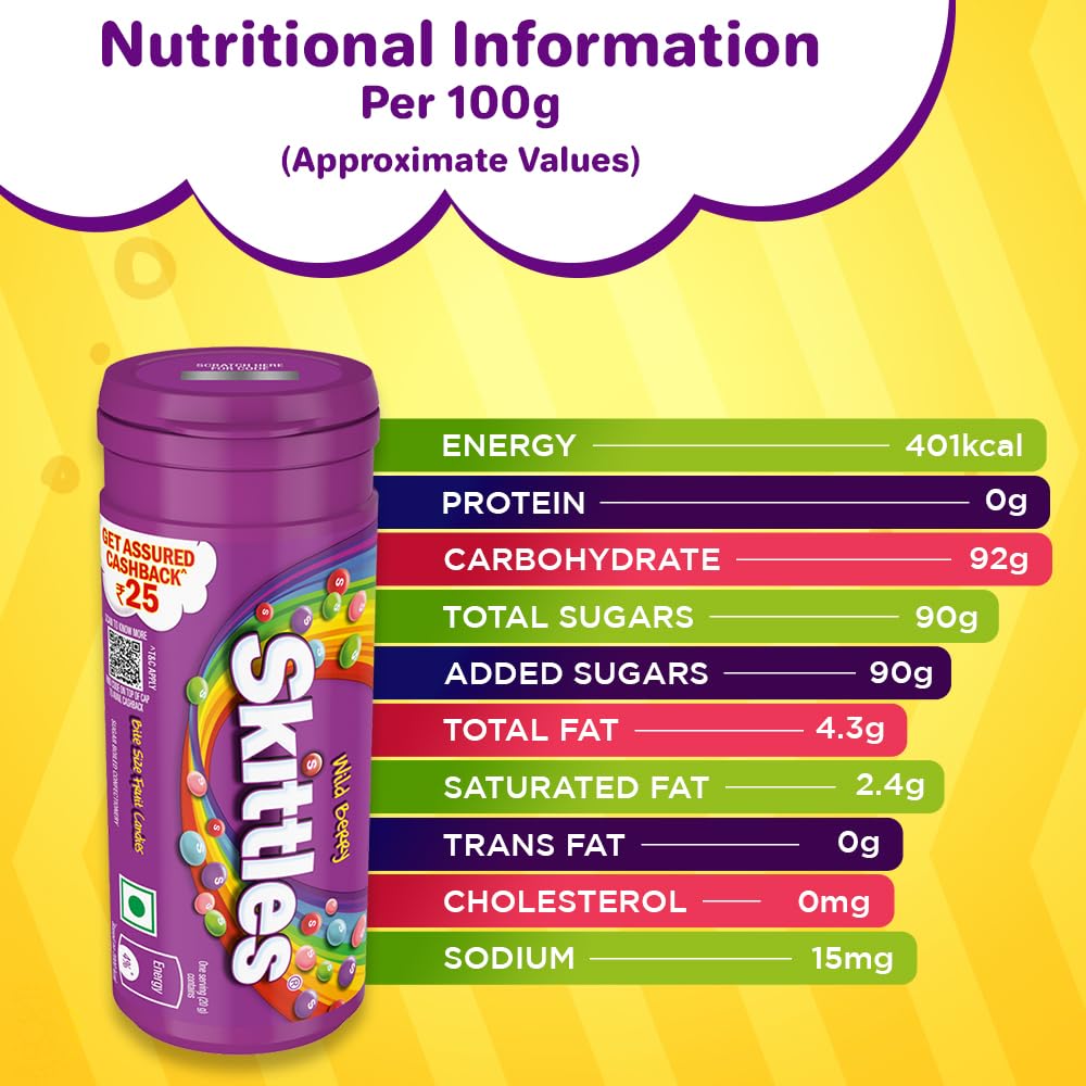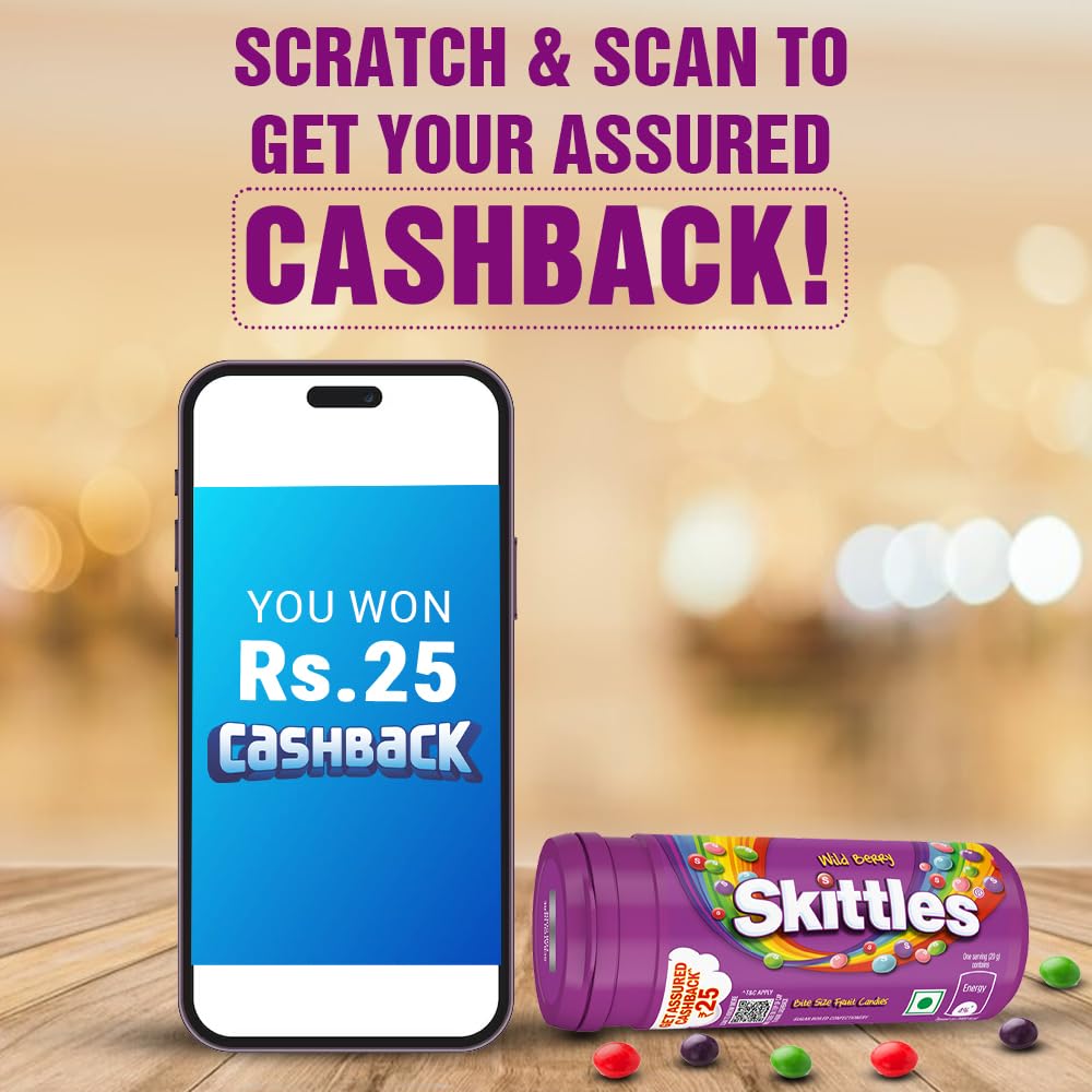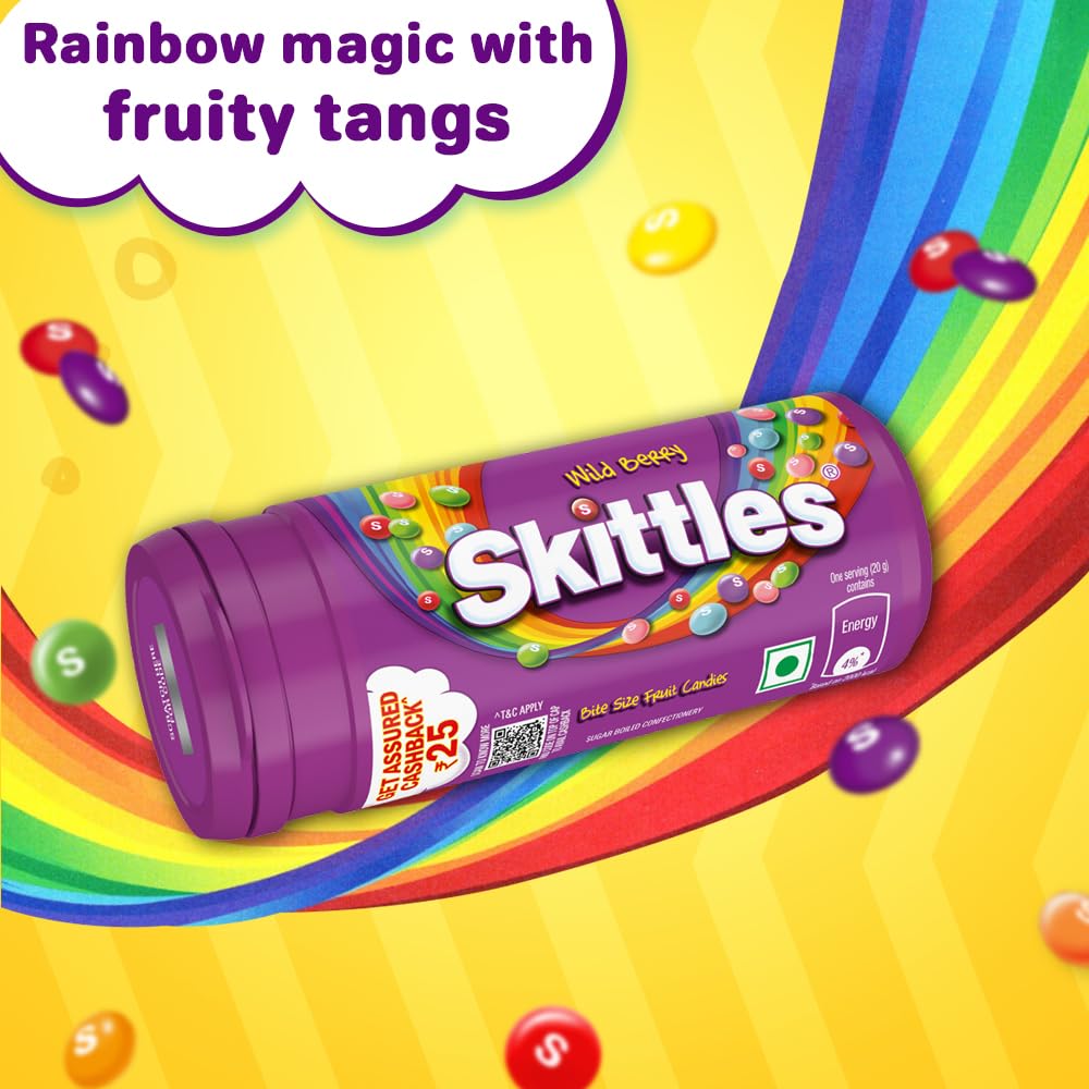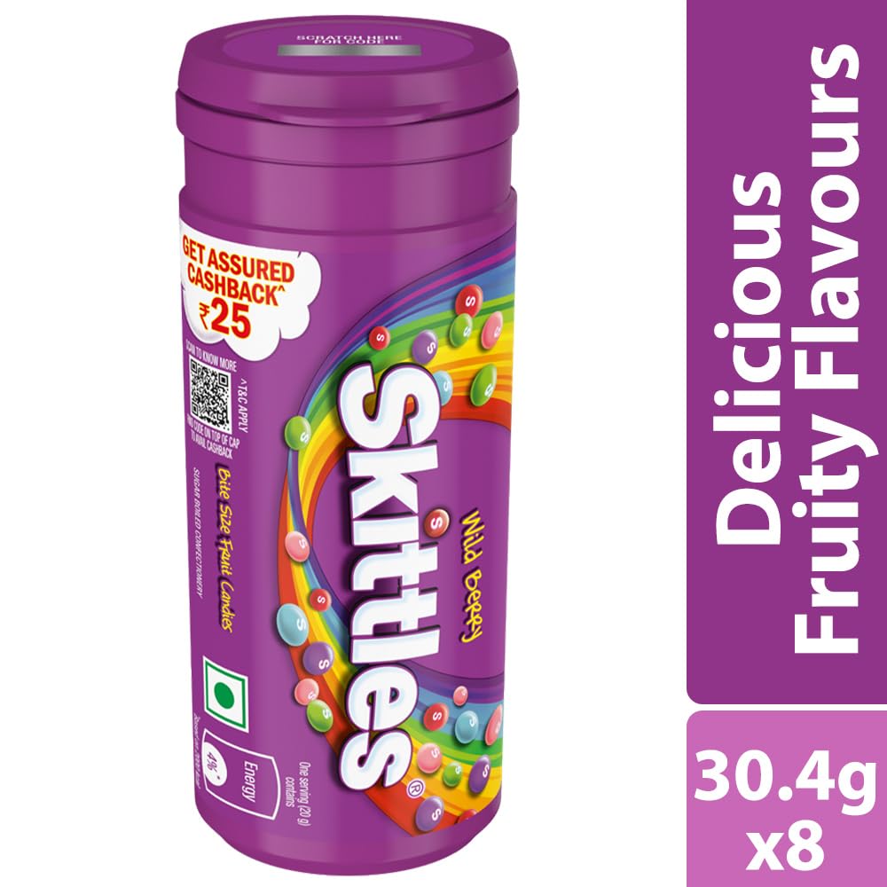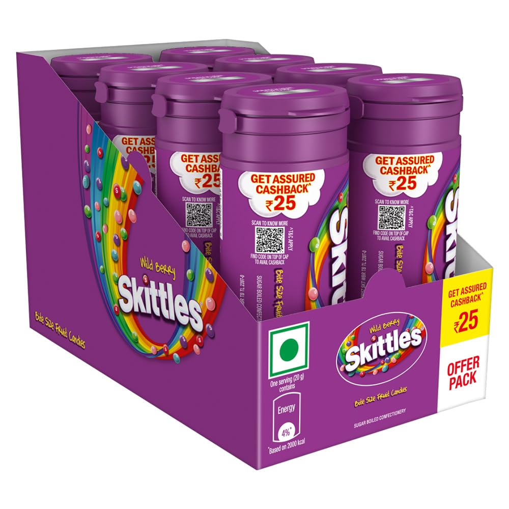 PACK CONTENT: This pack contains 8 Skittles Wild Berry candy tubes with an assured cashback of Rs.25