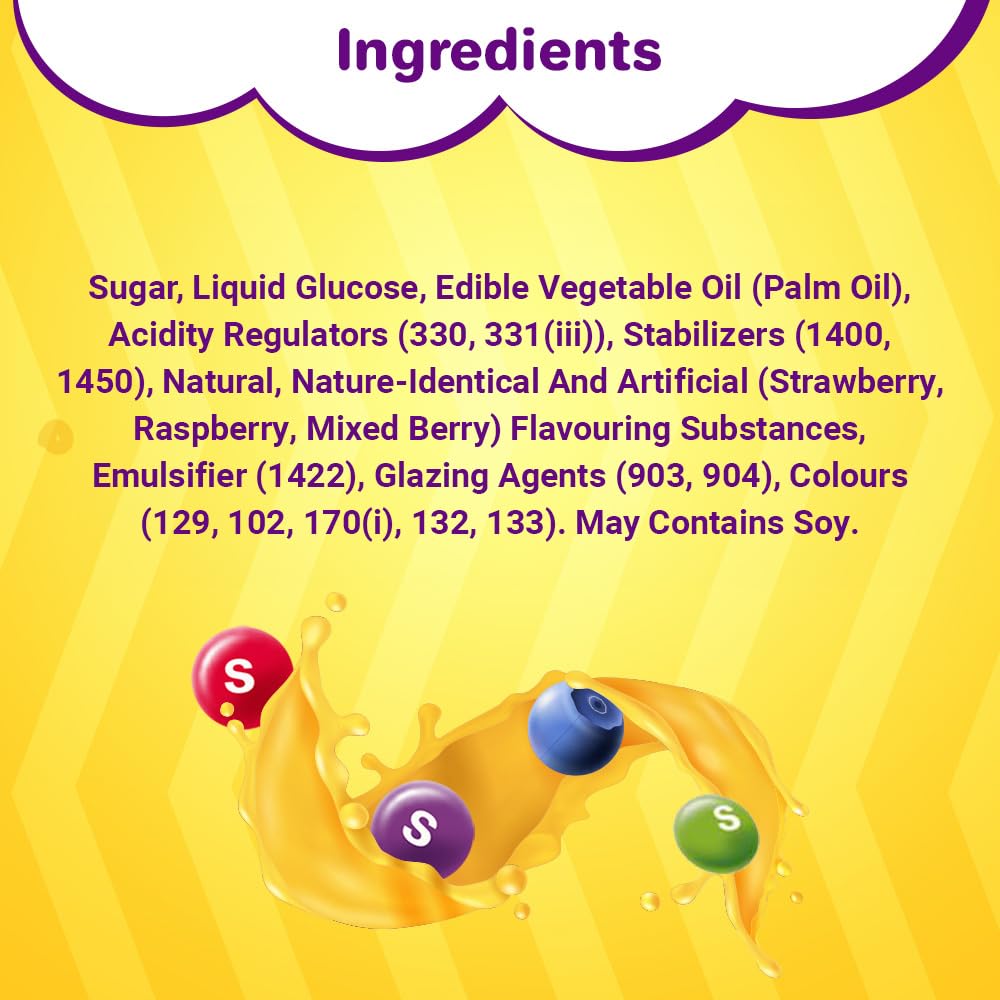 FRUIT FLAVOURED CANDIES: Each lentil of this fruit candy is made of a crisp sugar shell and is flavoured in Raspberry Strawberry Cherry Berry Punch and Melon Berry tangs