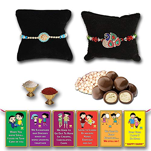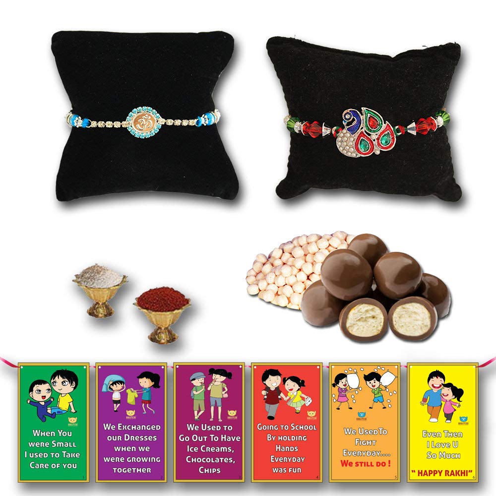 HomeGrocerySweetsChocolatesBOGATCHI Chocolate Coated Butterscotch Nuts/Crispy - 50g FREE with 2 Beautiful Unique Designer Rakhi Set of 2 Rakhi Best Rakhi for Brother + FREE Roli Chawal + FREE Rakhi Special Brother Sister Story Cards Set