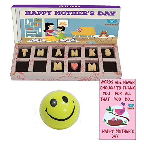 HomeGrocerySweetsChocolatesBOGATCHI Happy Mother's Day Theme Gift Box Special Mothers Day Gift Thanks MOM Chocolate Box 12 pcs + Free - Mothers Day Greeting Card + Smiley Ball