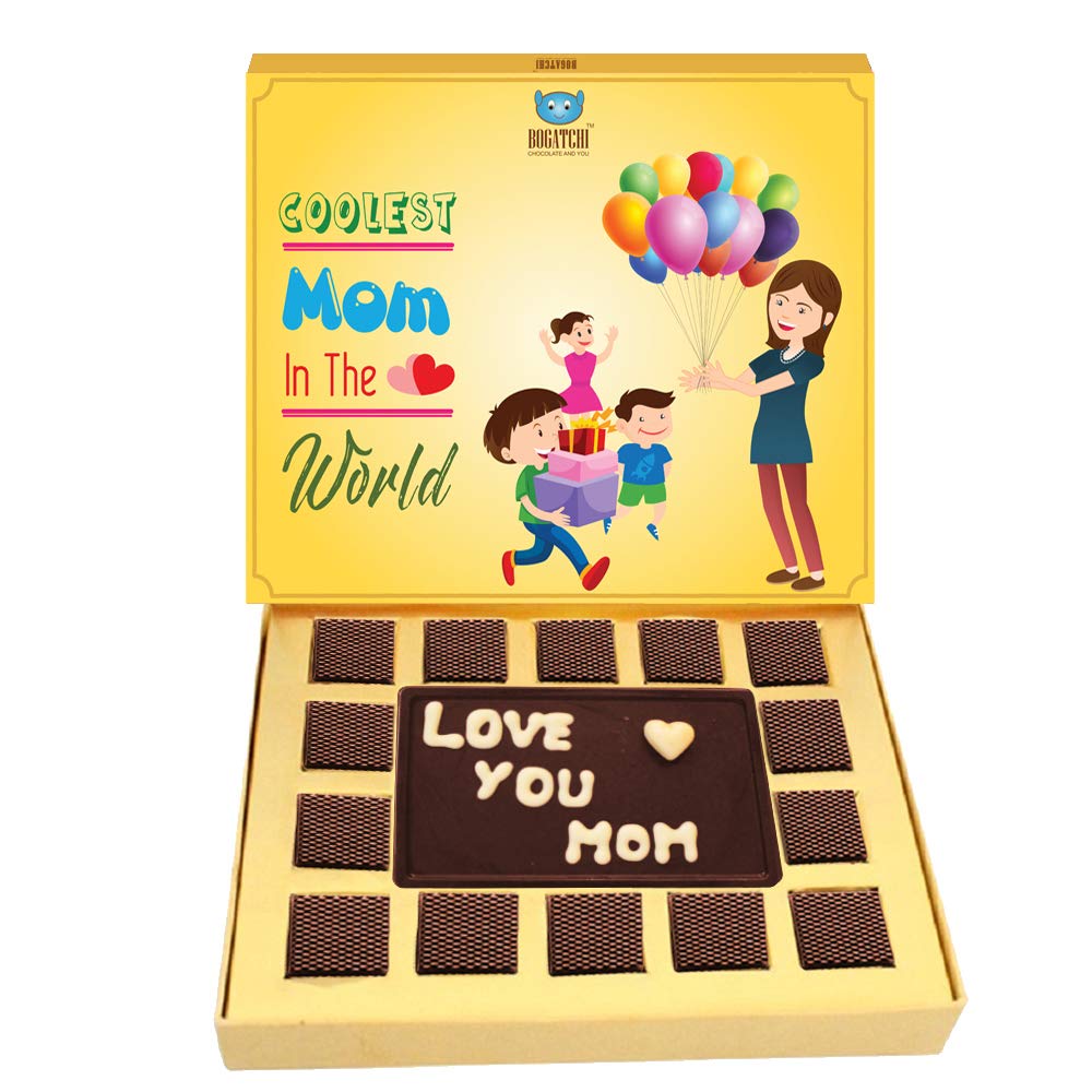 BOGATCHI Mothers Day Gift for mom Special Chocolate Box with Dark Bar 15 pcs + Free Mother's Day Card + Free Love Key Chain