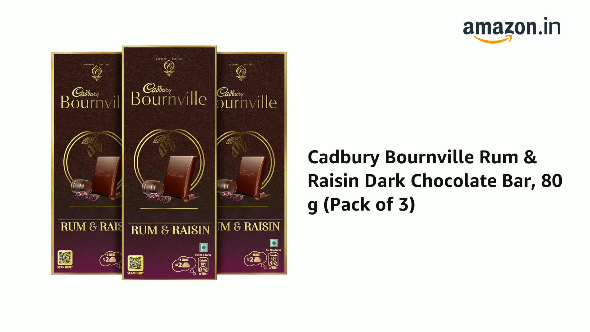 Cadbury Bournville Rum & Raisin 50% Dark Chocolate Bar, 78 Gm (Pack Of 3)