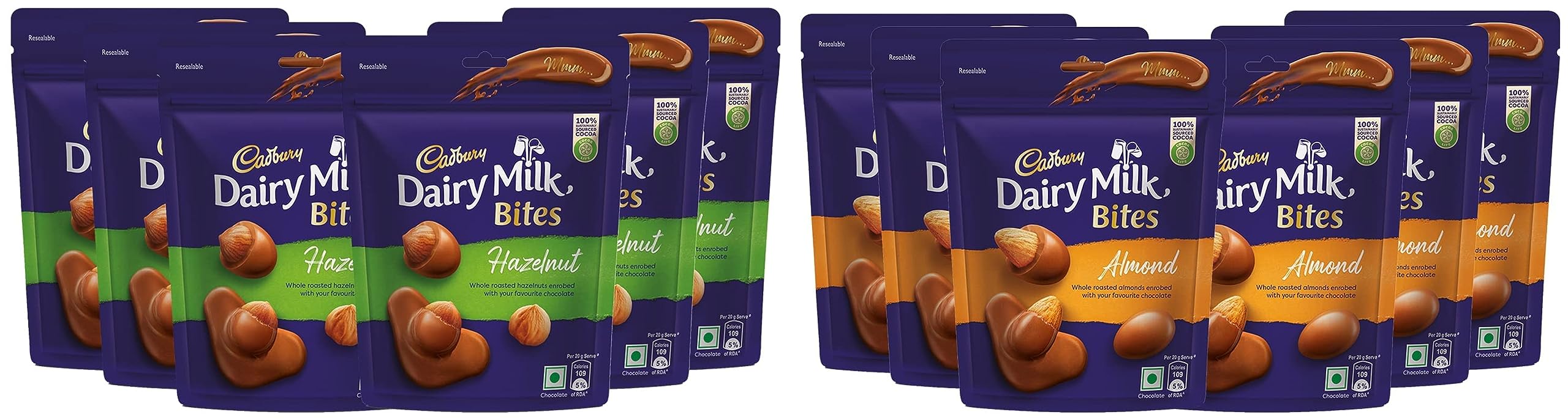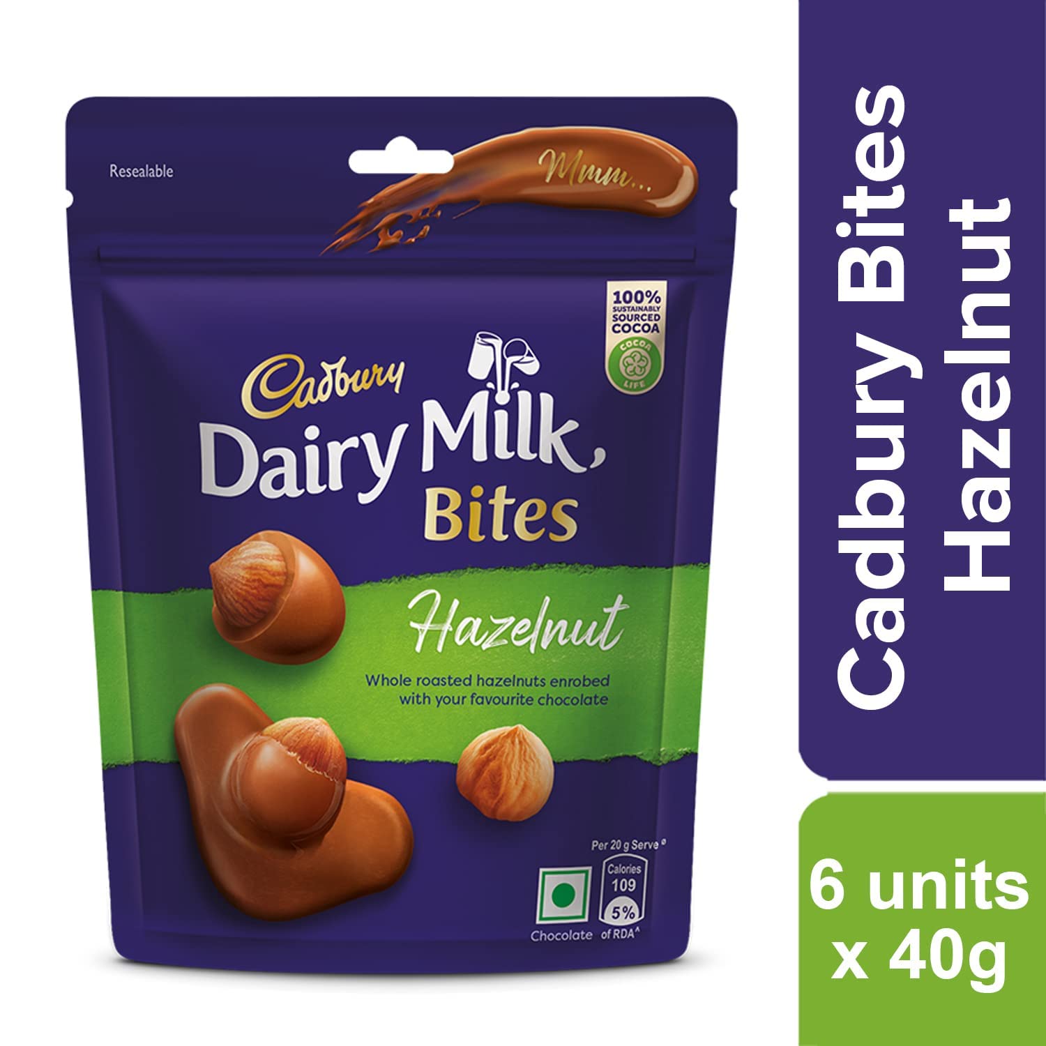 Cadbury Dairy Milk Bites- Almonds 40g - Pack of 6 & Cadbury Dairy Milk Bites- Hazelnut 40g - Pack of
