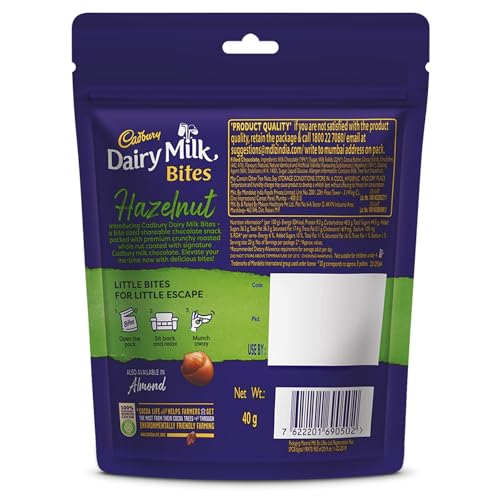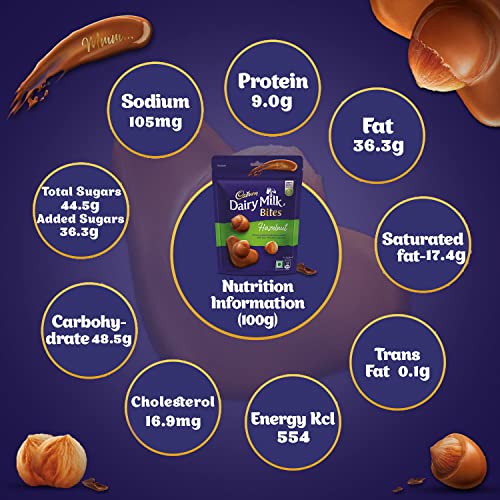 Bite sized chocolate snack packed with premium crunchy roasted whole Hazelnut coated with signature Cadbury Dairy Milk chocolate