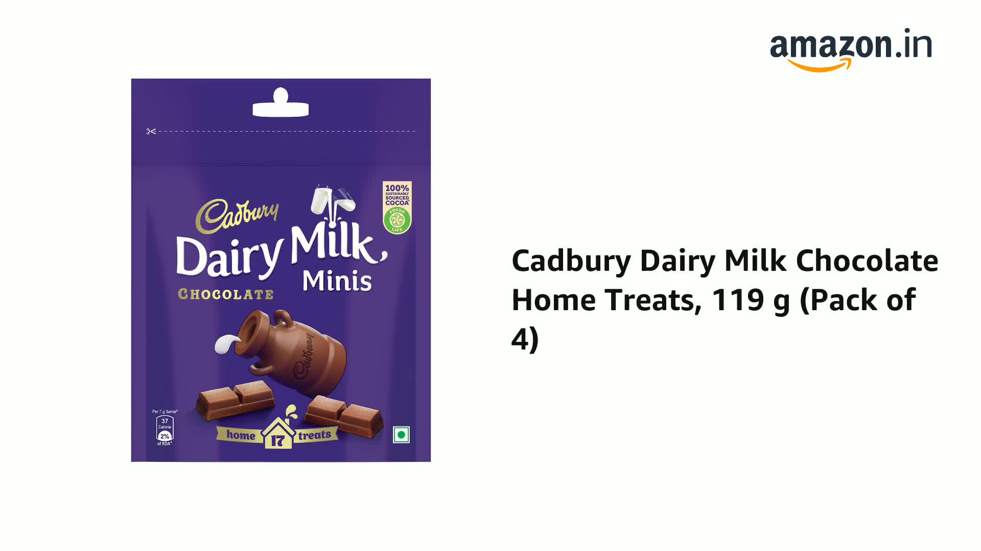 Cadbury Dairy Milk Chocolate Home Treats, 119 g (Pack of 4), 476 gram