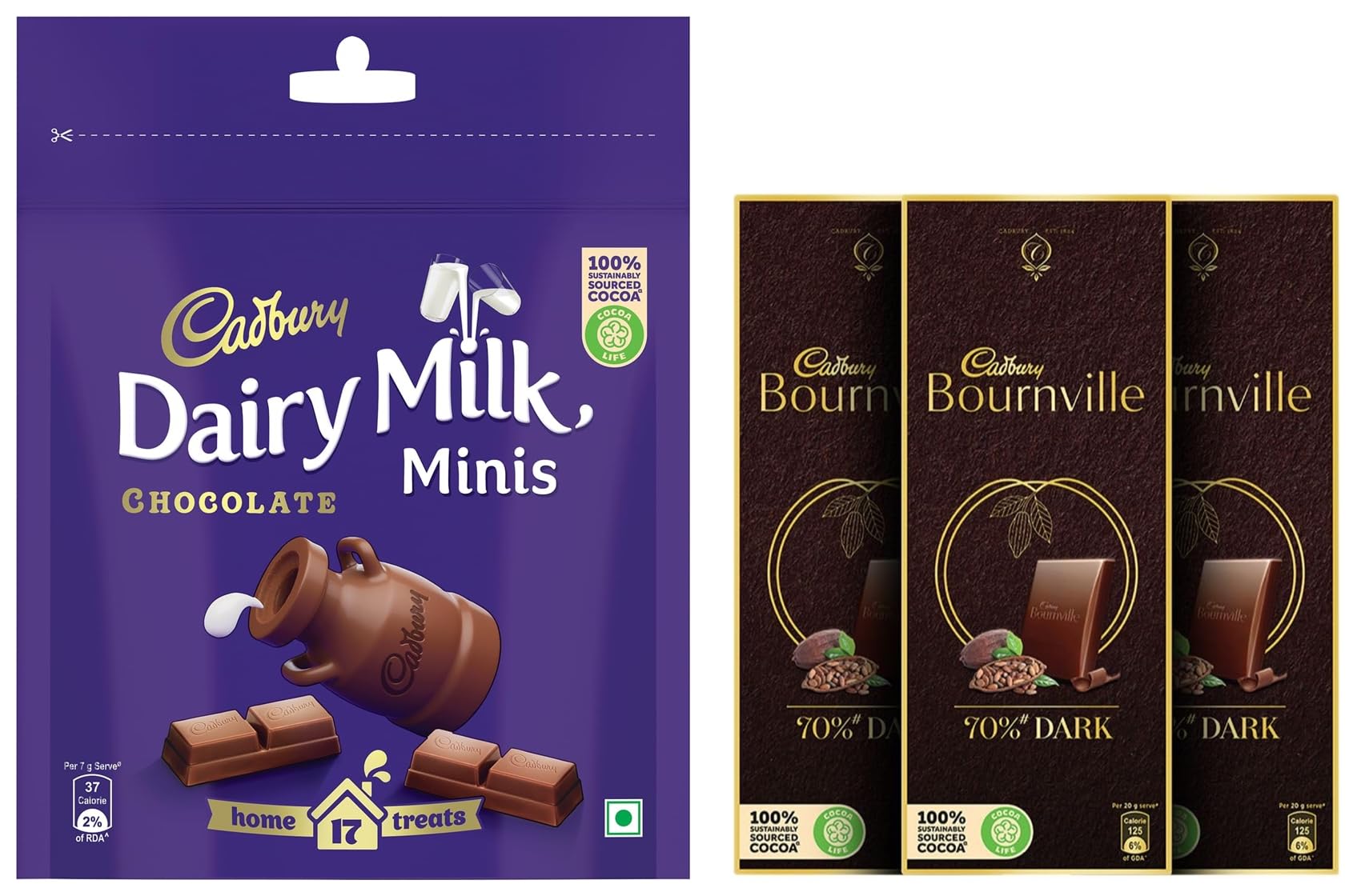 Cadbury Dairy Milk Home Treats 126 g pack of 18 Mini Chocolate Bars Pack of 4 & Cadbury Bournville R