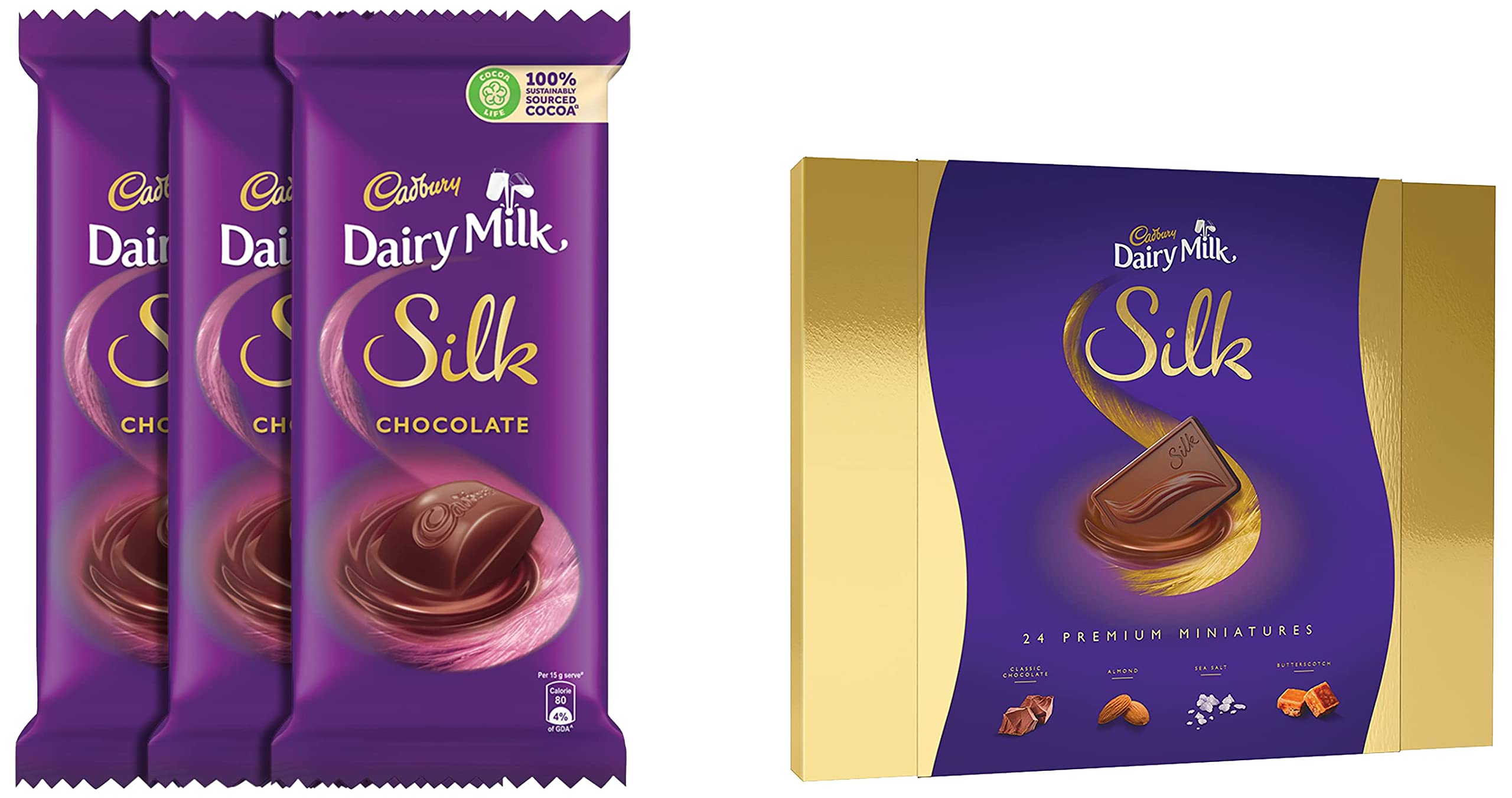Cadbury Dairy Milk Silk Chocolate Bar 150g (Pack of 3) & Silk Dairy Milk - Silk Miniatures Collection 240 g