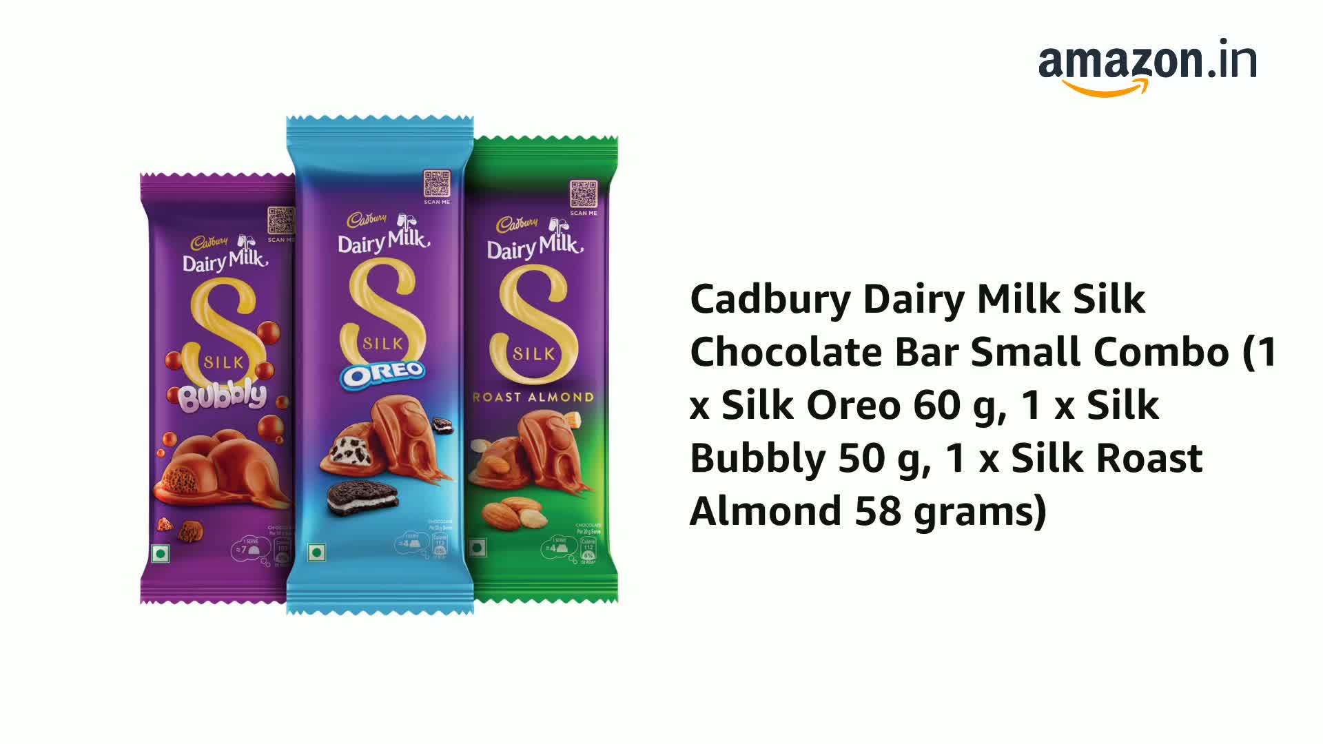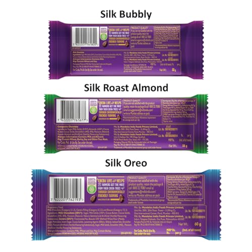 Cadbury Dairy Milk Silk Chocolate Bar Small Combo (1 x Silk Oreo 60 g, 1 x Silk Bubbly 50 g, 1 x Silk Roast Almond 58 grams)