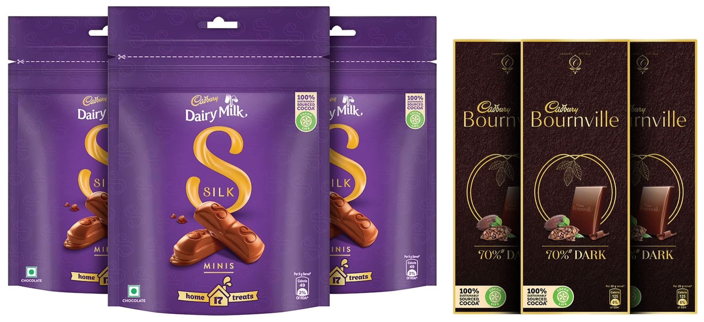 Cadbury Dairy Milk Silk Chocolate Home Treats 162gm - Pack of 3 & Cadbury Bournville Rich Cocoa 70%