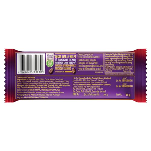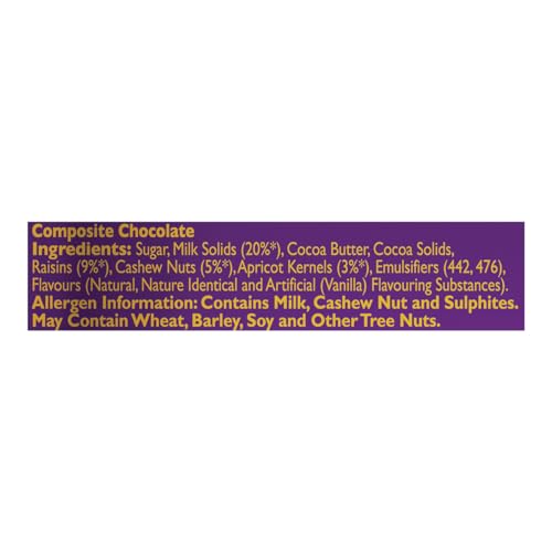 Cadbury Dairy Milk Silk Fruit and Nut is made with a glass and a half of milk and offers a delicious combination of combination of creamy milk chocolate and almonds & raisins