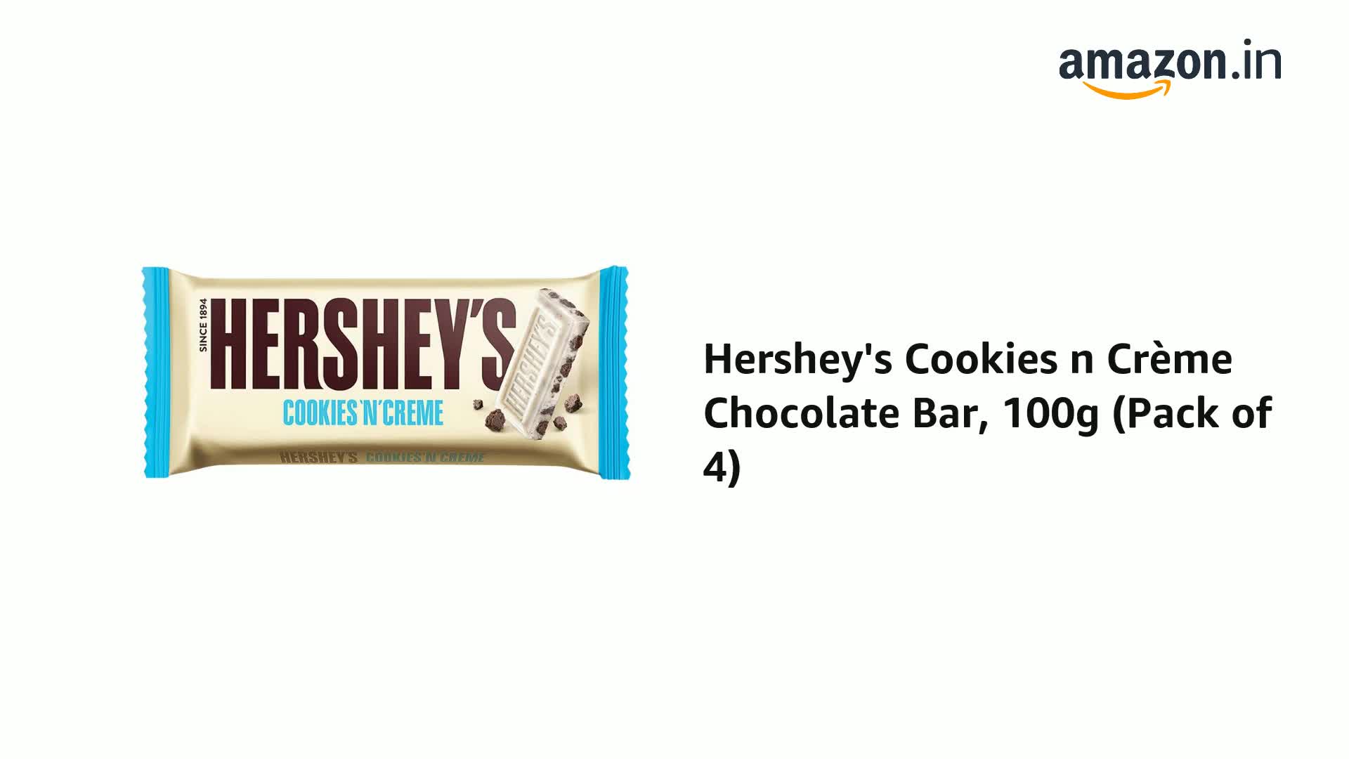 Hershey's Cookies n Crème Chocolate Bar, 100g (Pack of 4)
