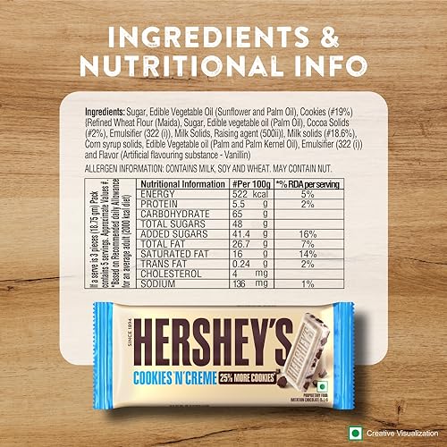 Dive into a world of indulgence: Rich creamy goodness with cookie bits. Indulge in HERSHEYS BARS Cookies N Creme.
