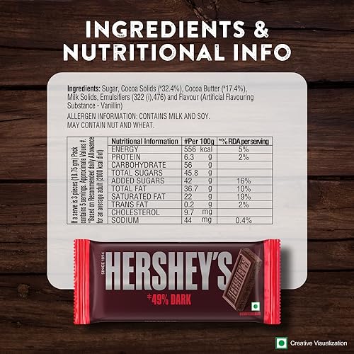 Dive into a world of indulgence: Indulge in the richness of smooth dark cocoa rich chocolate with the HERSHEYS deliciously dark bar