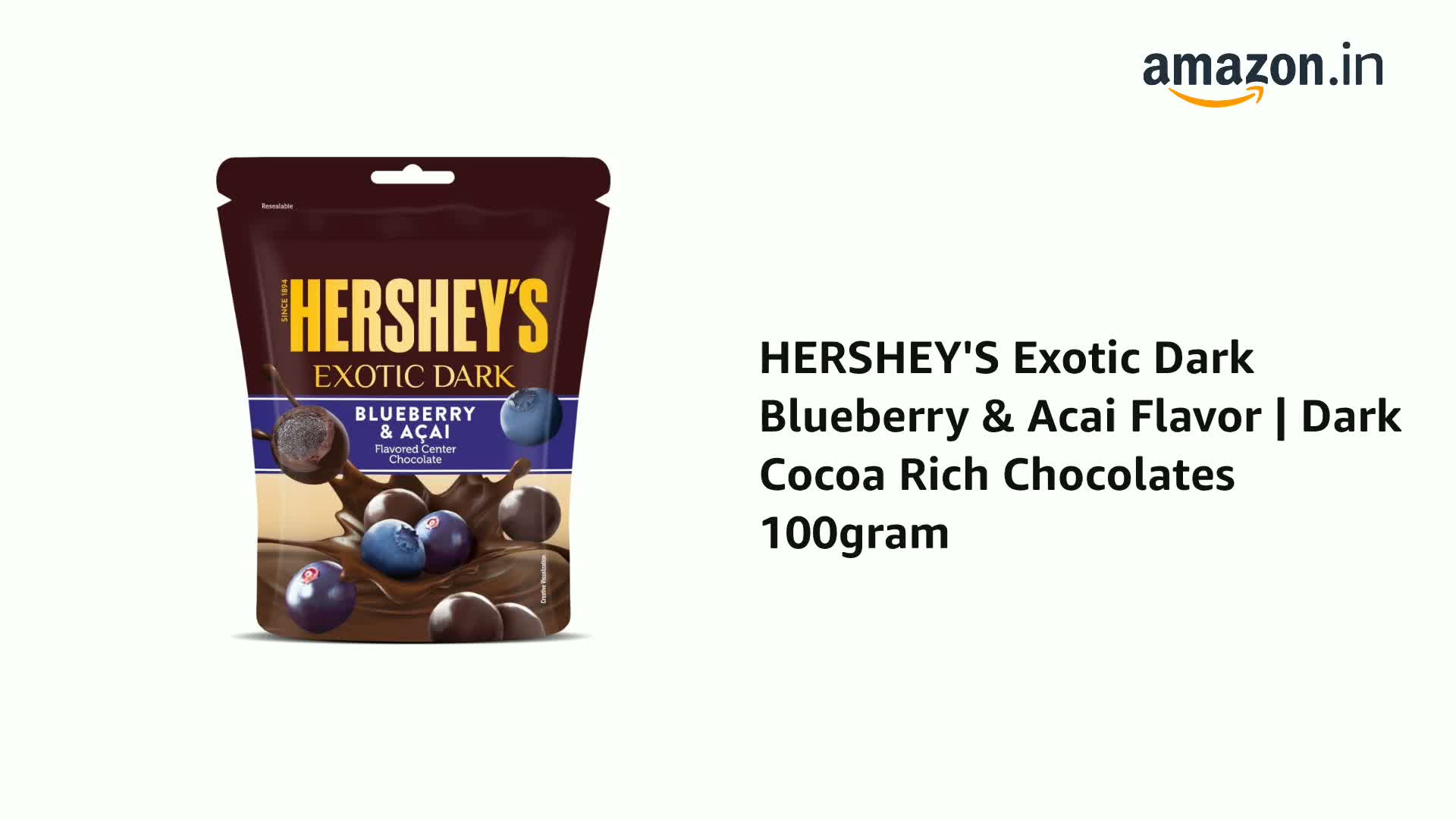HERSHEY'S Exotic Dark Blueberry & Acai Flavor | Dark Cocoa Rich Chocolates 100gram