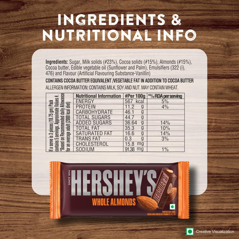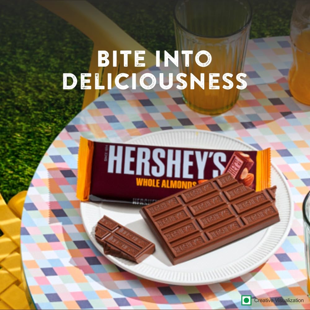 Dive into a world of indulgence: Loaded with the goodness of crunchy whole almonds in every bite. Experience HERSHEY'S BARS Whole Almonds today.