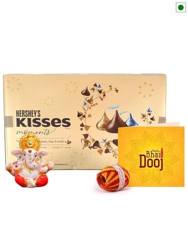 HomeGrocerySweetsChocolatesTIED RIBBONS Bhai Dooj Gift Set for Brother with Hersheys Kisses Moments Chocolate Box (12 pcs) Mini Ganesha Idol Statue Greeting Card and Kalawa Roli Chawal Combo Pack