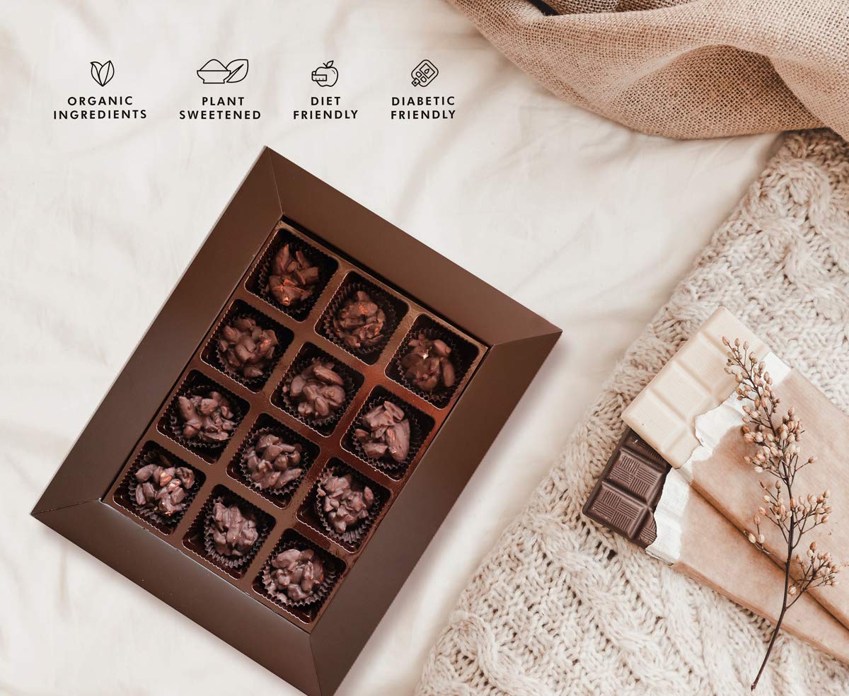Zevic Sugar Free Peanut Protein Chocolate Rochers Gift Hamper | Sweetened with Stevia | Healthy & Diabetic Friendly | Keto Chocolate Celebration Gift Box - 12 Pcs