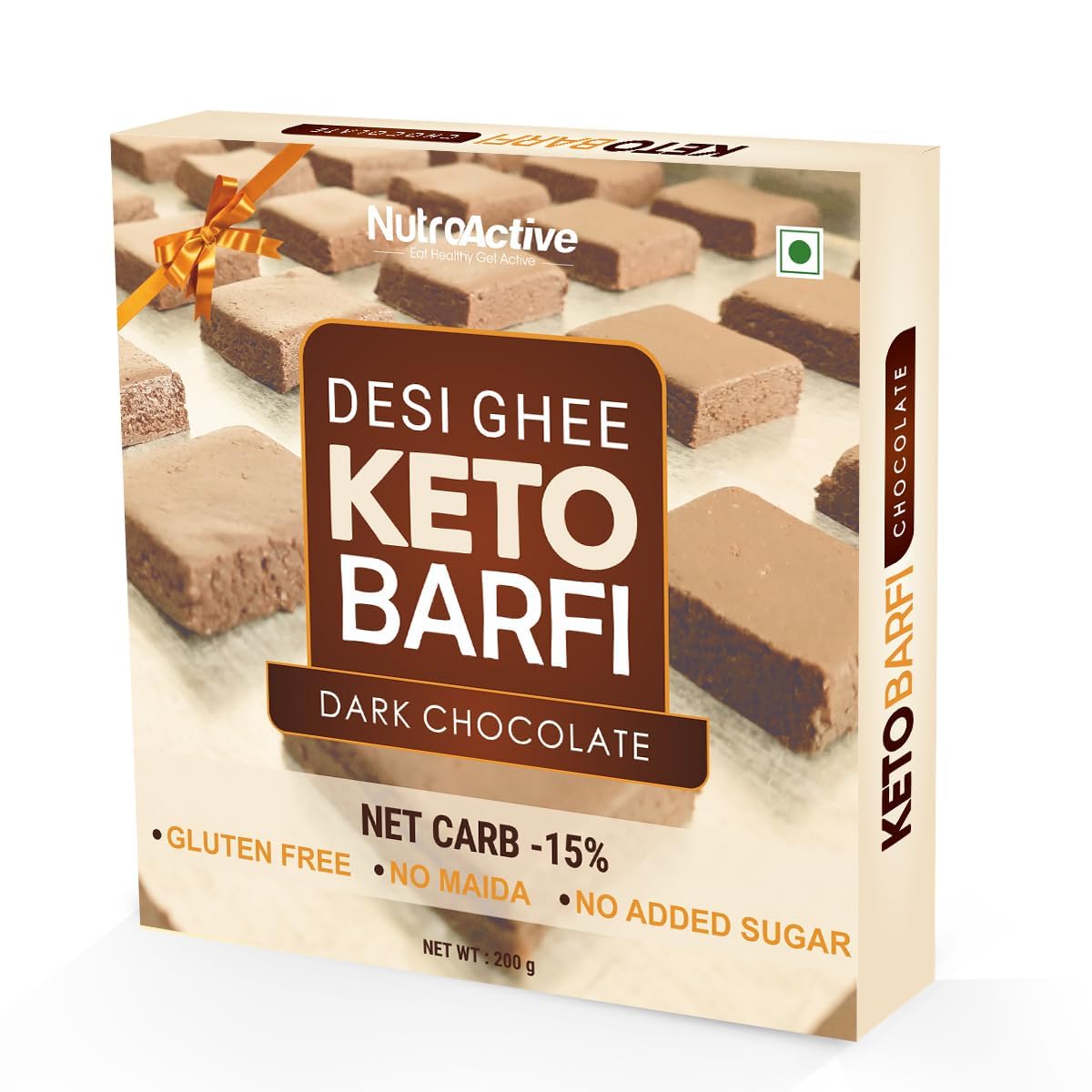 KETO COMPLIANT SWEETS/MITHAI (15% NET CARB):------ Your search for ultra low carb sweets ends here because NutroActive Keto Chocolate Hazelnut Burfi contains just 15% net carb. These Keto Chocolate Hazelnut Burfi do not contain any Maida or sugar. These B