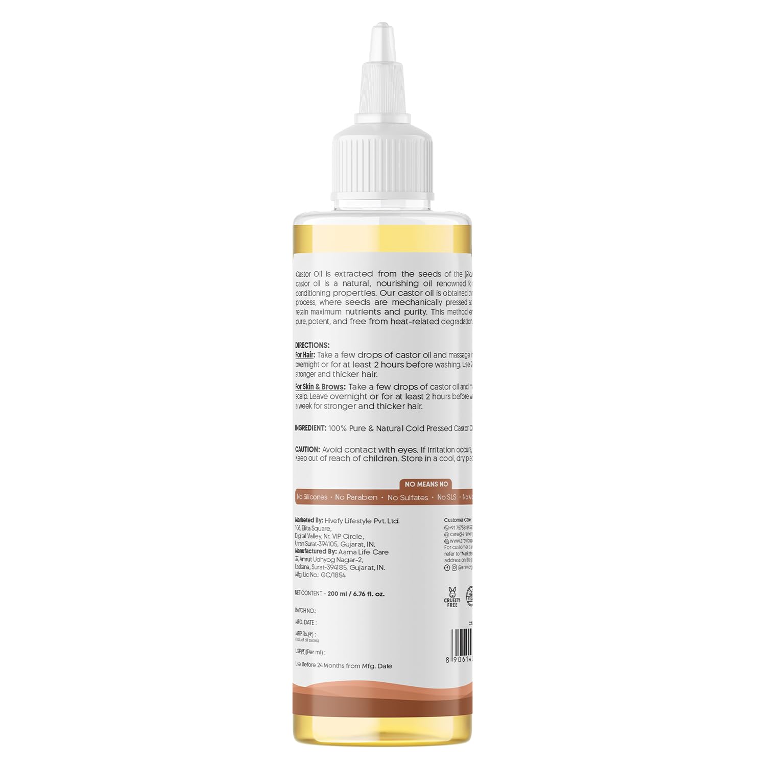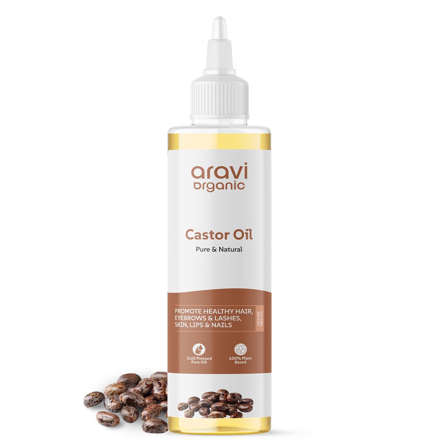 Aravi Organic 100% Pure Cold Pressed Castor Oil - For Healthy Hair and Skin - 200ml