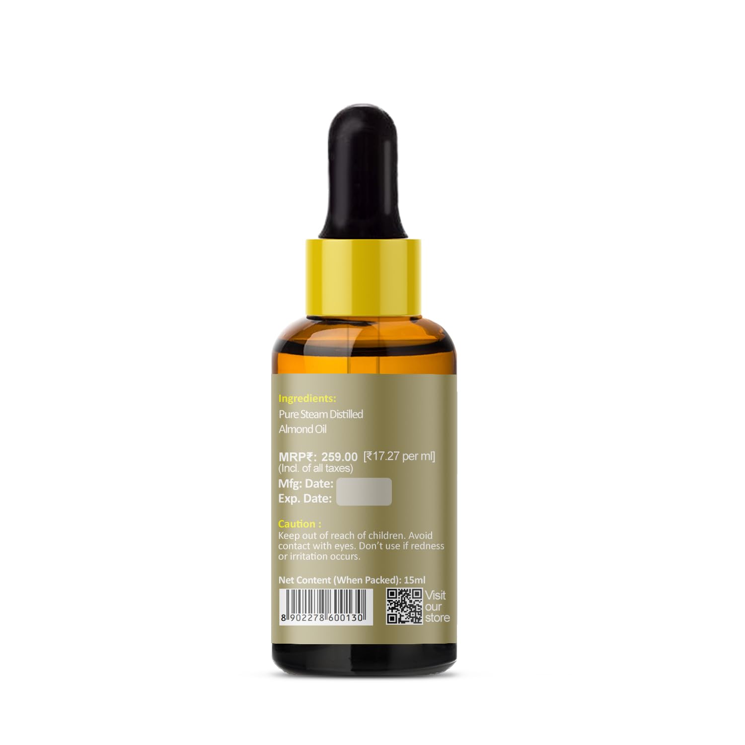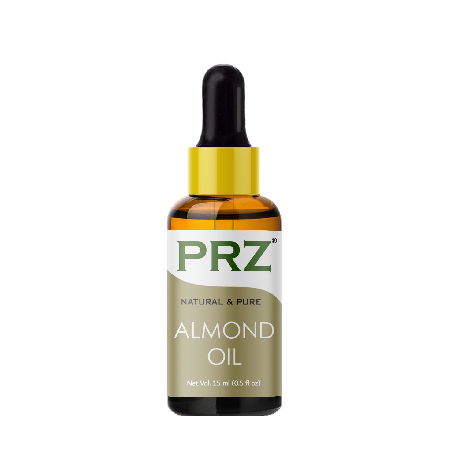 PRZ Almond Cold Pressed Carrier Oil - Pure Natural & Therapeutic Grade Oil for Aromatherapy Body Massage Skin Care & Hair Care 15 ml