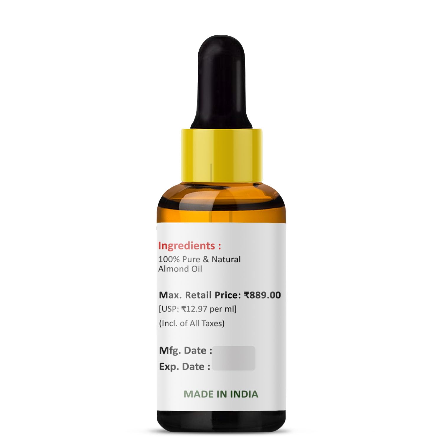 PRZ Almond Cold Pressed Carrier Oil - Pure Natural & Therapeutic Grade Oil for Aromatherapy Body Massage Skin Care & Hair Care 30 ml