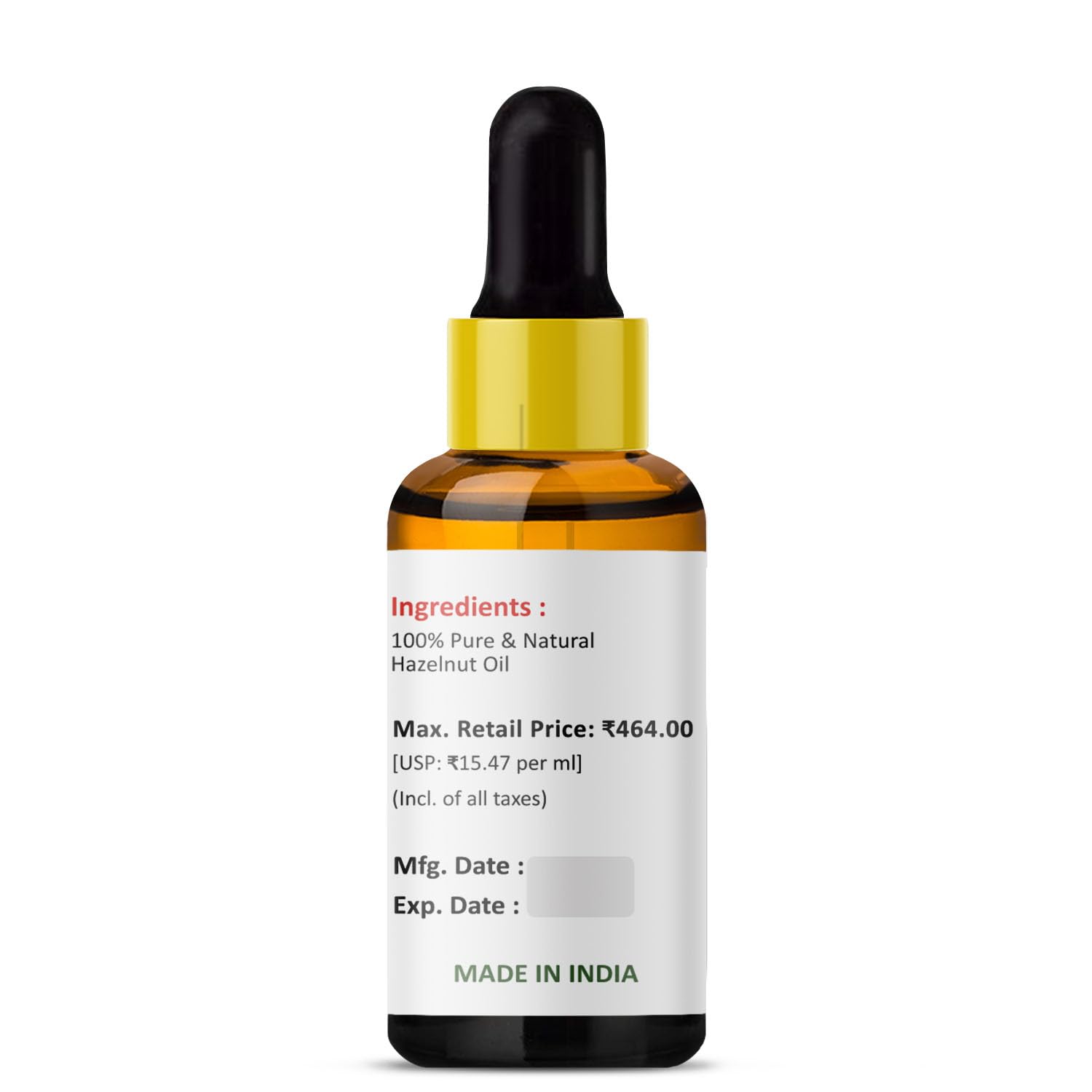 PRZ Hazelnut Cold Pressed Carrier Oil (30ML) - Pure Natural & Therapeutic Grade Oil For Aromatherapy Body Massage Skin Care & Hair Care