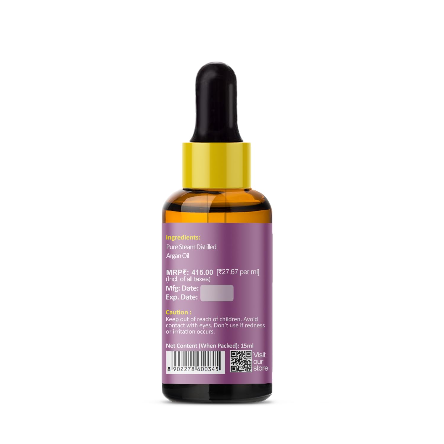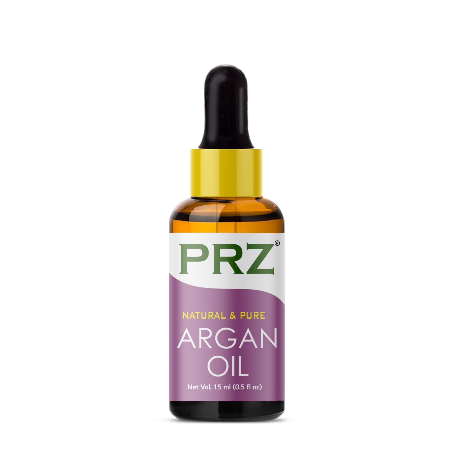 PRZ Moroccan Argan Cold Pressed Carrier Oil - Pure Natural & Therapeutic Grade Oil for Aromatherapy Body Massage Skin Care & Hair Care 15 ml