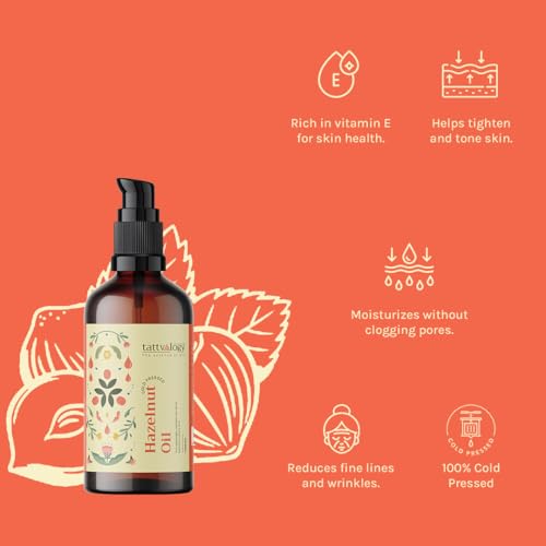 Tattvalogy Hazelnut Carrier Oil | Cold Pressed Hazelnuts | For Hair & Skin | Treats Dry Skin, Soothes Dry Scalp & Conditions Hair | Rich Essential Nutrients & Vitamins (50ml)