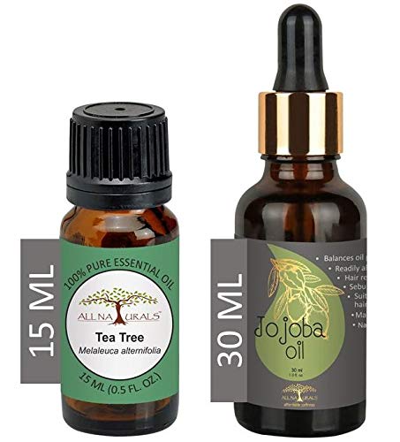 All Naturals Acne-Control Combo | Tea Tree Essential Oils (15 ML) and Jojoba Carrier Oil 30 ML | For Oily Acne-prone skin & Dandruff-control