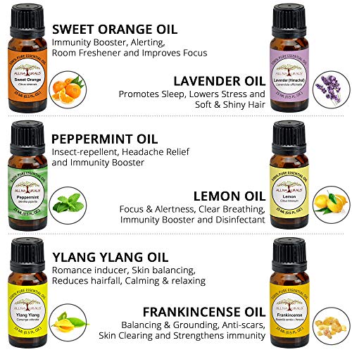 In the package: 6 x 15ml - pure therapeutic grade essential oils from the house of All Naturals India. 1 unisex aromatherapy bracelet. Safety storage: this combo has concentrated essential oils that must never be ingested. Do not apply directly on skin. A