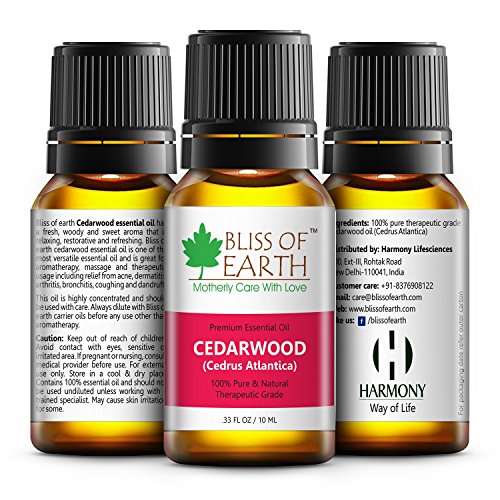 WISDOM AND BEAUTY EXPERT: Bliss of earth cedarwood oil is widely accepted and used by most natural healthcare practitioners and aroma therapists. It's known to have antifungal and antiseptic properties and used to improve your skin help with organ functio