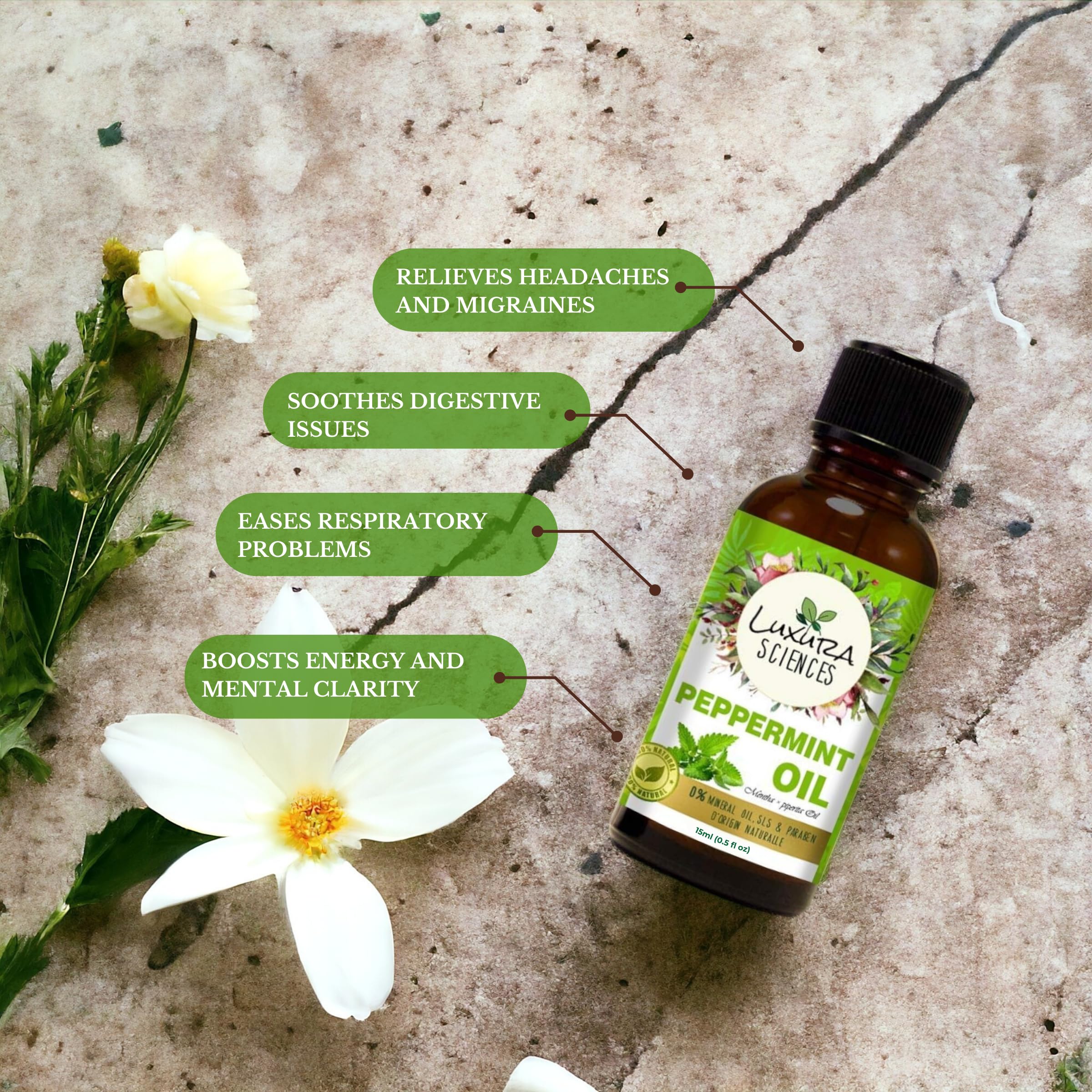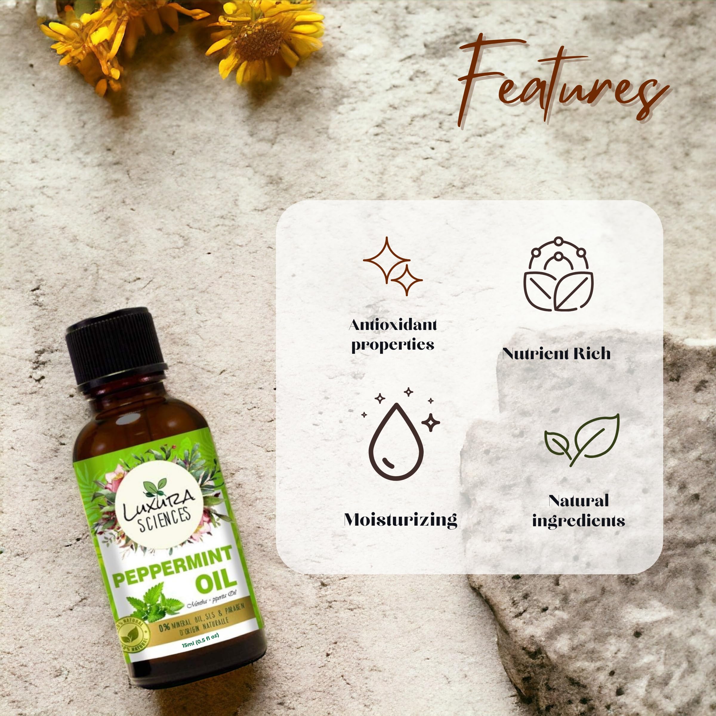Luxura Sciences Essential oils for Hair | Skin | Nails | Aromatherapy (Peppermint 15ml)