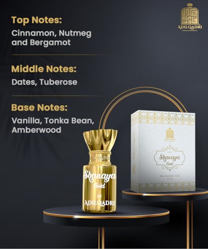 HomeHealth & PersonalAroma ProductsAttar/PerfumesAdilqadri Shanaya Gold Attar for Men & Women | Arabic Non-Alcoholic Perfume Attar | Warm Vanilla, Spicy & Floral Fragrance | Gift for Him & Her | 12ML Roll-On