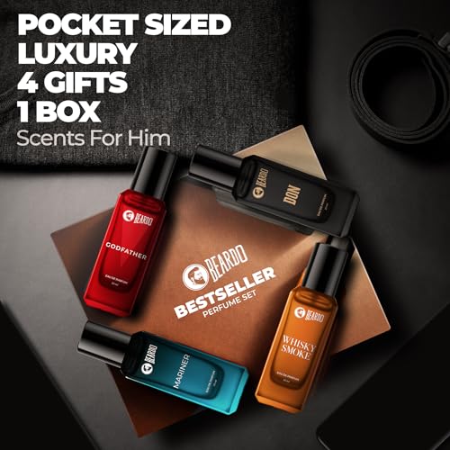 HomeHealth & PersonalAroma ProductsAttar/PerfumesBeardo Perfumes Giftset For Men (Pack of 4 x 20ml) Whisky Smoke, Godfather, Tsunami and Black Musk | Long Lasting Perfume Musk & Woody Fresh Fragrance | Valentines day gift for husband | Gift for boyfriend | Gift for Men| Anniversay gift | Couple gift