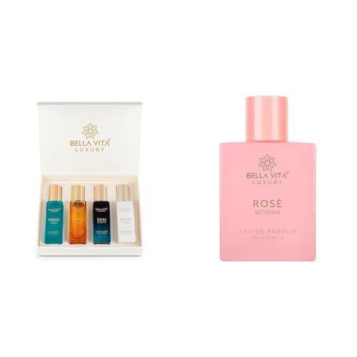 HomeHealth & PersonalAroma ProductsAttar/PerfumesBella Vita Luxury Eau De Parfum Spray Gift Set 4X20 Ml & Rose Women Eau De Parfum Amber Perfume Spray With Black Currant, Vanilla, Jasmine|Floral 100 Ml