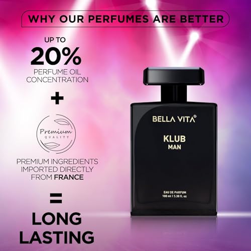 HomeHealth & PersonalAroma ProductsAttar/PerfumesBella Vita Luxury KLUB | Long Lasting Eau De Parfum 100ml Perfume for Man | Lemon, Rose and Vanilla | Musky, Spicy and Woody Premium Fragrance for Men