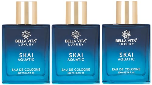 HomeHealth & PersonalAroma ProductsAttar/PerfumesBella Vita Organic Luxury Skai Aquatic Eau De Cologne Unisex Perfume for Unisex with Bergamot, Pink Pepper |Long Lasting Aqua EDC Fragrance Scent, 100 Ml (Pack of 3)