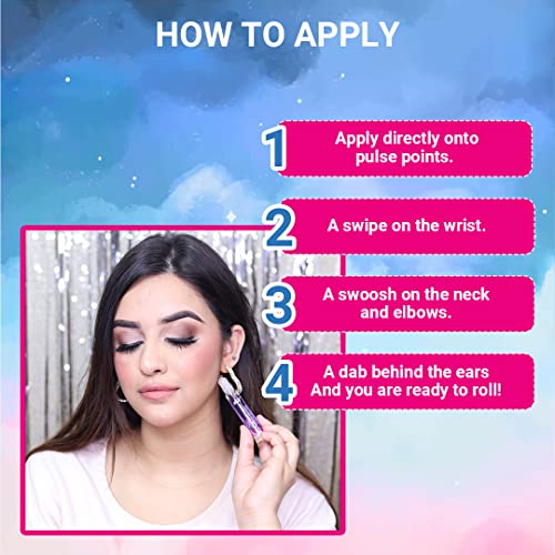 How to use: Long Lasting Roller ball Perfume. Apply directly onto pulse points. A swipe on the wrist. A swoosh on the neck and elbows. A dab behind the ears. And you are ready to roll!
